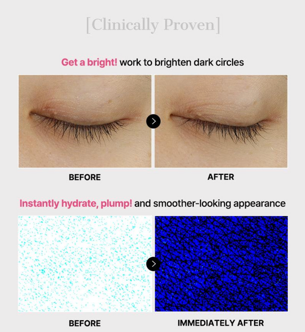 Packed with 4 peptides, collagen, caffeine, niacinamide, and hyaluronic acid, these hydrogel patches de-puff, brighten, and smooth in just 10 minutes. Powered by a high-performance K-beauty formula, they revive tired, stressed eyes with an instant lift and a firmer, fresher, more confident look.
